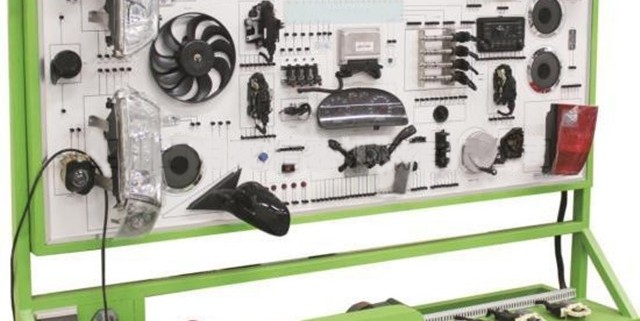 - Connect the power supply, the manipulation of teaching plate on various kinds of electrical switches, buttons, real demonstration instrument system, lighting system, horn, wiper system, ignition system, electric Windows, electric door lock, sound system, starting system, charging system and so on the working process of the vehicle electrical systems.