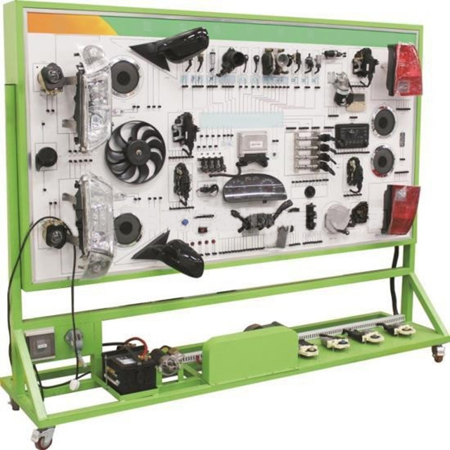 - Connect the power supply, the manipulation of teaching plate on various kinds of electrical switches, buttons, real demonstration instrument system, lighting system, horn, wiper system, ignition system, electric Windows, electric door lock, sound system, starting system, charging system and so on the working process of the vehicle electrical systems.
